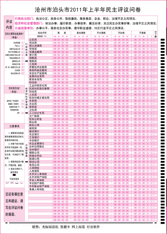 我們可以根據(jù)客戶(hù)的要求定制專(zhuān)用或者個(gè)性話(huà)的答題卡,比如:在答題卡上印刷上客戶(hù)的名稱(chēng)、商標(biāo)。根據(jù)客戶(hù)要求可以添加任意的選項(xiàng)。添加手寫(xiě)部分。
